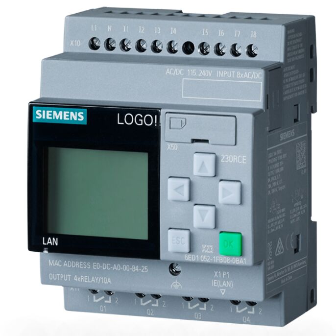 6ED1052-1FB08-0BA1 to kompaktowy moduł logiczny z serii LOGO! 8.3 firmy Siemens, przeznaczony do małych zadań automatyzacji. Obsługuje zasilanie 115/230 V AC/DC, posiada 8 wejść cyfrowych i 4 wyjścia przekaźnikowe, a także wbudowany wyświetlacz i port Ethernet do zdalnego monitorowania. Z pamięcią 400 bloków, możliwością rozszerzenia I/O i funkcjonalnością serwera WWW zapewnia niezawodne i elastyczne sterowanie w zastosowaniach przemysłowych i budowlanych. Certyfikowany do użytku globalnego, zapewnia stabilną wydajność i łatwe programowanie za pomocą oprogramowania LOGO! Soft Comfort.